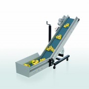 Das Winkelförderband Typ 4061 ist universell einsetzbar. Es ermöglicht den einfachen Übergang von einem horizontalen in einen ansteigenden Bereich. Aufgrund der hervorragenden Qualität des Gurtes, der Lager und des Antriebsmotors ist dieser Förderer absolut zuverlässig, langlebig und wartungsfrei.